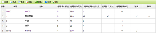 密码策略设置完成,可通过删除、修改功能对密码策略随时进行删除修改。