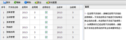 1.请根据子系统名称对照启用,未购买的子系统请不要启用,否则会影响月末结账。