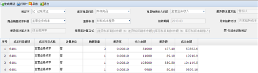 售价(计划价)销售成本结转明细页面