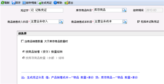 当库存商品科目的期末数量余额小于商品销售收入科目的贷方数量发生额,若不希望结转后造成库存商品科目余额为负数,可选择按库存商品科目的期末数量余额结转。