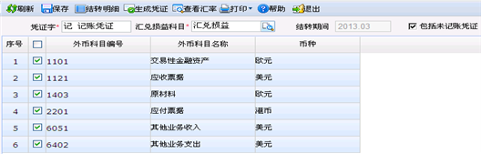 【第二步】设置好凭证字,汇兑损益科目,点击〖结转明细〗按钮,弹出结转明细页面如下:
