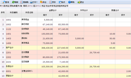 科目汇总表显示页面