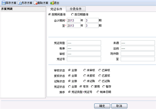 凭证条件:指按凭证类型、凭证来源、制单、出纳,审核,凭证号,制单日期,会计期间等进行查询。