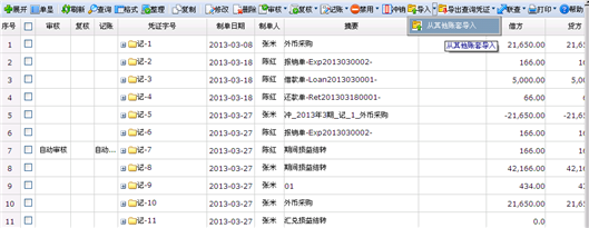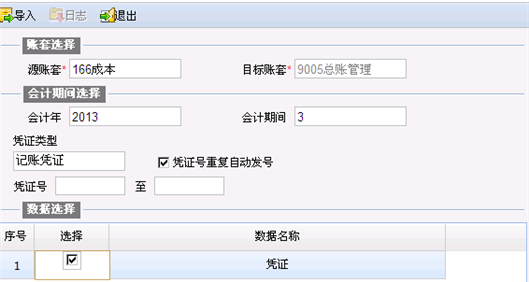 功 能:用于同一软件版本下把其它账套中的凭证导入到当前账套。