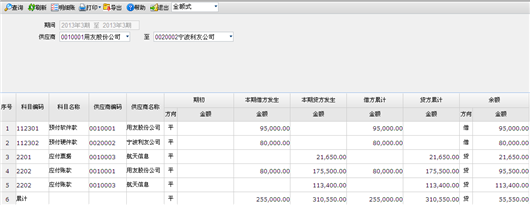 【主要功能】用于查询某个往来供应商所有科目的总账情况。