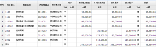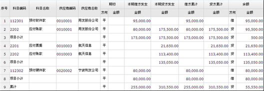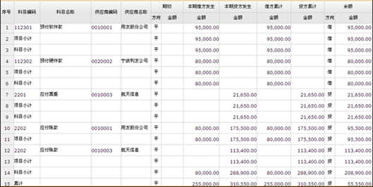 - 显示上级科目汇总信息:勾选此项则查询结果显示上级科目供应商往来余额信息。