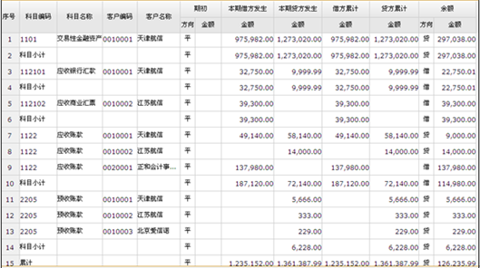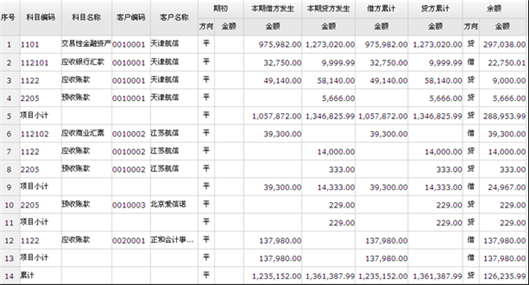 若查询条件勾选了“按核算项目小计”则查询结果按核算项目排序并显示项目小计行,如下图: