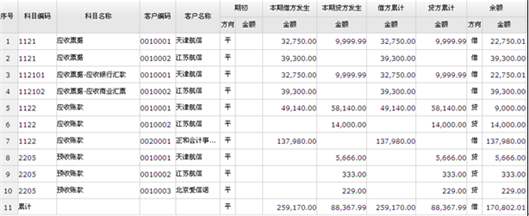 【主要功能】用于查询某个往来客户所有科目的总账情况。