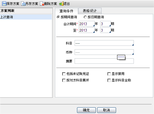 银行日记账查询设置页面