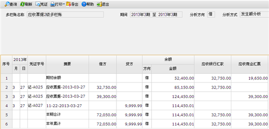 【主要功能】查询科目多栏账。