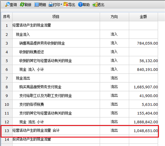 主要功能:查询统计现金流量项目发生情况。同时也可以打印或导出所查询的现金流量统计表。