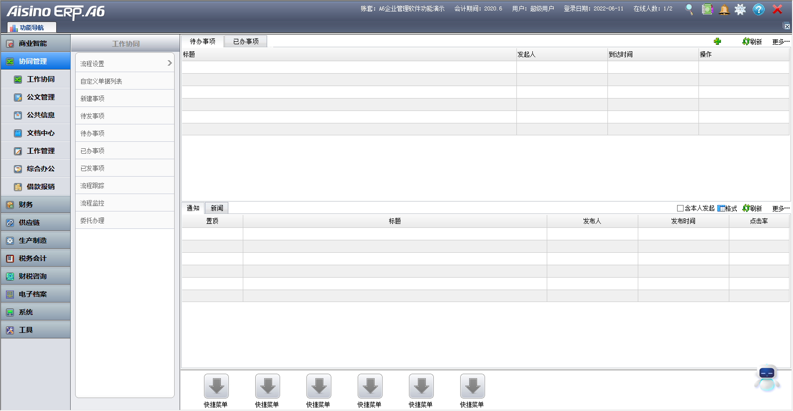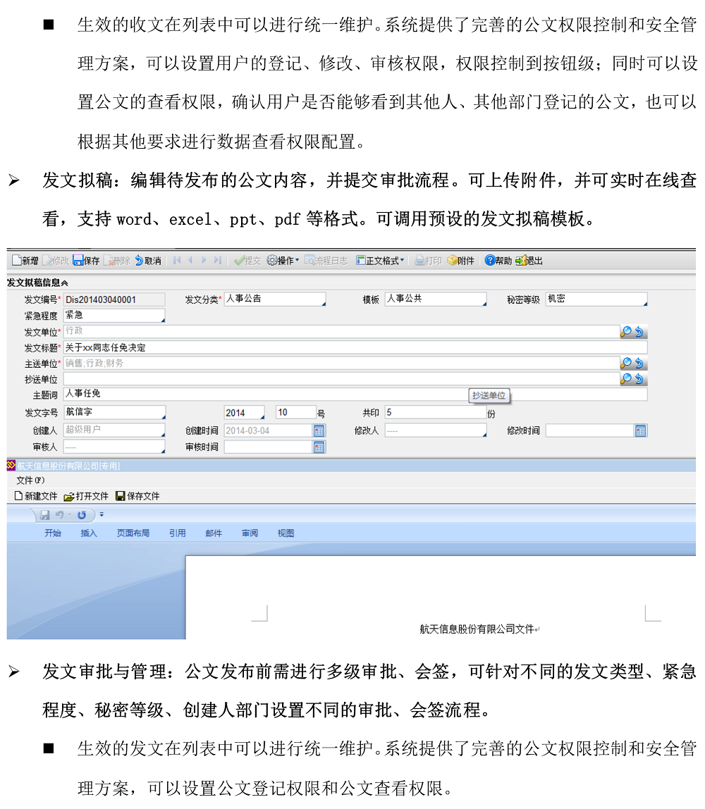 航天信息ERP A6企业管理软件 办公OA子系统功能介绍及操作说明