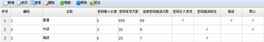 【菜单路径】功能导航/系统/权限管理/密码策略