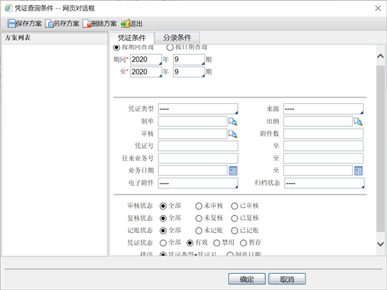 凭证条件 指按凭证类型、凭证来源、制单人、出纳人,审核人,凭证号,制单日期,会计期间,往来业务号,业务日期等进行查询。