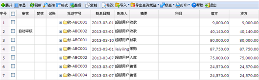 主要功能:查询凭证信息。可以按凭证状态、审核状态、记账状态等进行查询。