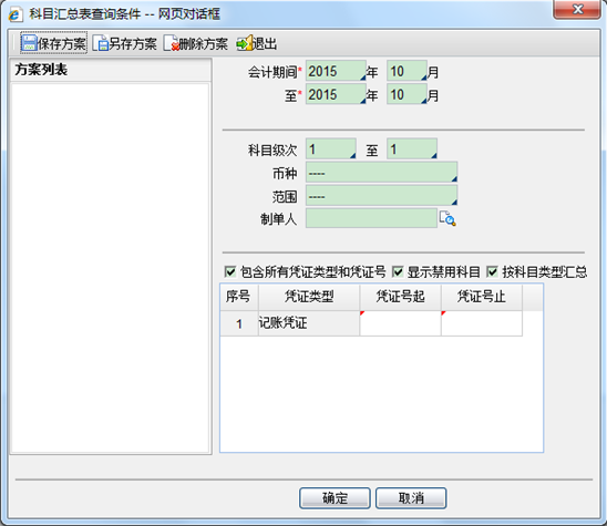 主要功能:按条件对记账凭证进行数据汇总并生成科目汇总表。
