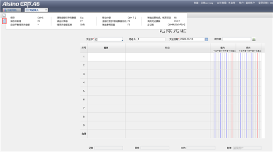 新增一张凭证 | F6 | 自动保存当前凭证,并新增 |