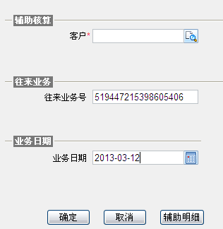 2) 凭证录入带往来核算的科目,系统自动弹出辅助核算页面,若参数勾选[往来业务核算必录业务号],则需要录入业务号凭证才可以保存,否则凭证不允许保存。
