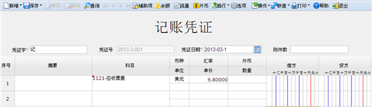 主要功能:根据用户设置的凭证字,录入凭证信息。