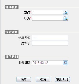 当科目为辅助核算时,系统根据科目属性要求输入相应的辅助信息。如:客户、供应商、部门、物品、仓库等,若科目带数量或外币核算则需要录入数量单价或汇率外币数量,若录入的是银行或往来科目,则可录入结算信息。