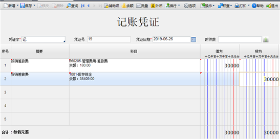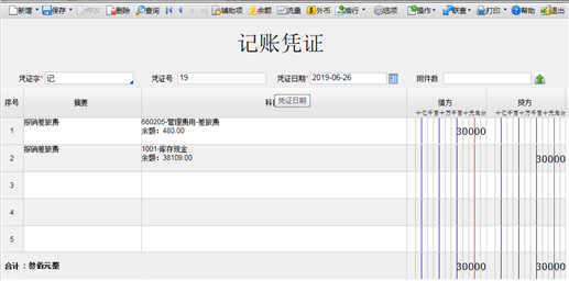 如需要插入凭证,则点击〖插入〗按钮来新增凭证,系统保存插入的凭证,并同时将插入凭证号之后的凭证后移。凭证插入时,若当前凭证之后存在记账凭证,不可插入凭证。
