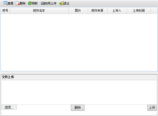 1) 点击〖操作-管理附件〗 可进行附件的上传,查看、删除、拍照上传操作,如下图: