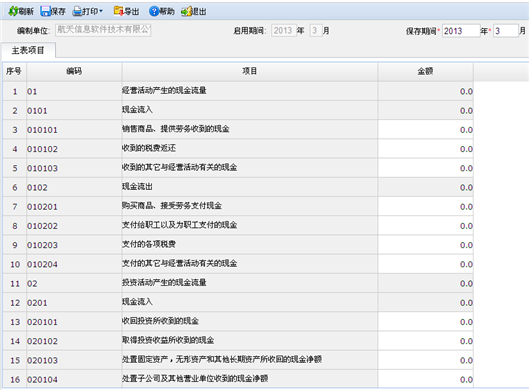 【第二步】在现金流量期初页面,录入各现金流量项目的金额,并进行保存。