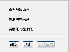 进入科目期初后,点〖对账〗按钮,屏幕显示如下图所示,点〖确定〗按钮系统进行对账。如有对账不平的情况会自动在显示[错误信息]中显示。
