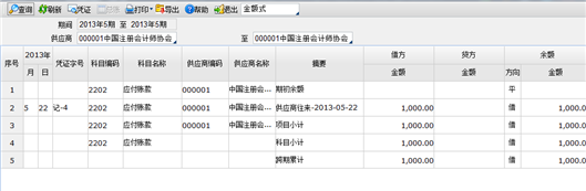功能导航/财务/总账管理/往来管理/供应商往来明细账