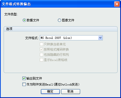 若勾选“输出到文件”,则可导出所选文件格式的文件,若勾选“作为附件发送Email”,则凭证可作为附件通过outlook发送。
